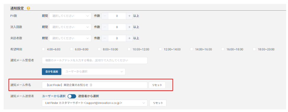 [リセット]をクリックすることで初期値【List Finder】来訪企業のお知らせ()に戻すことができます。