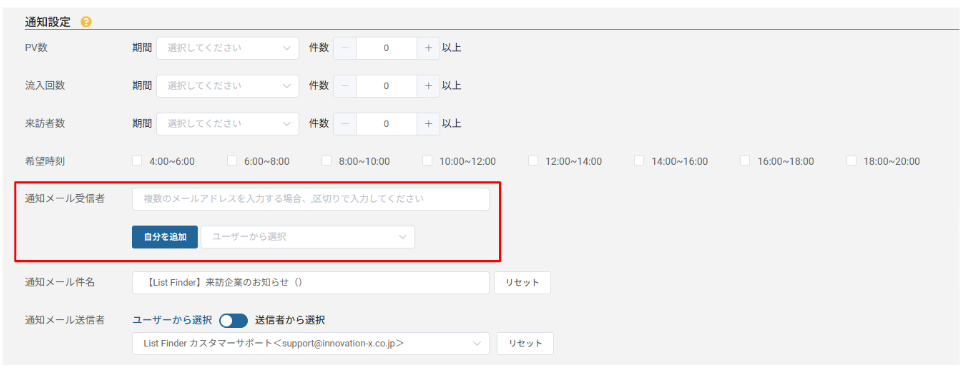 通知先メールアドレスを指定します。