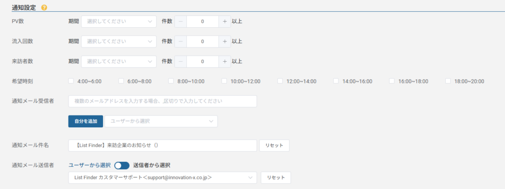 絞り込み条件に登録した条件に合致する企業がWebサイトに来訪した際に、ご指定のメールアドレスに通知を送ります。